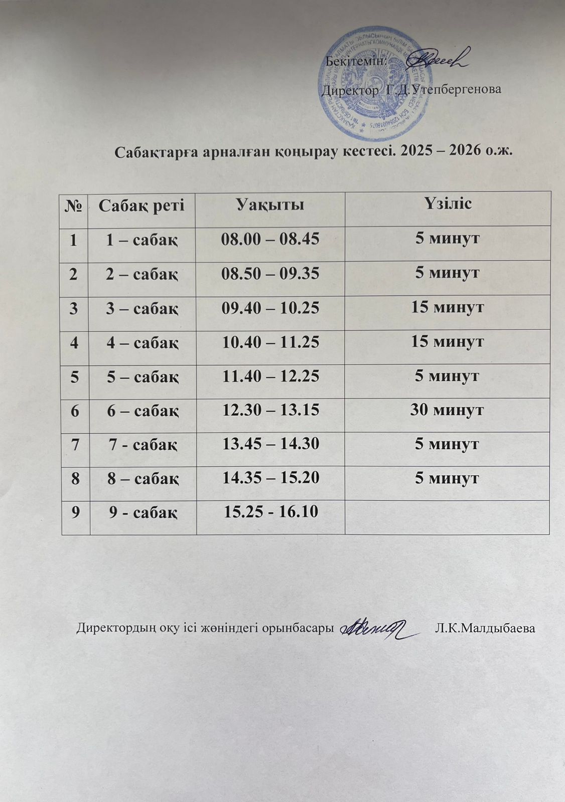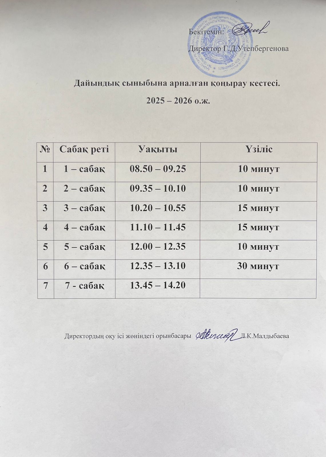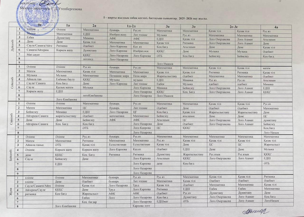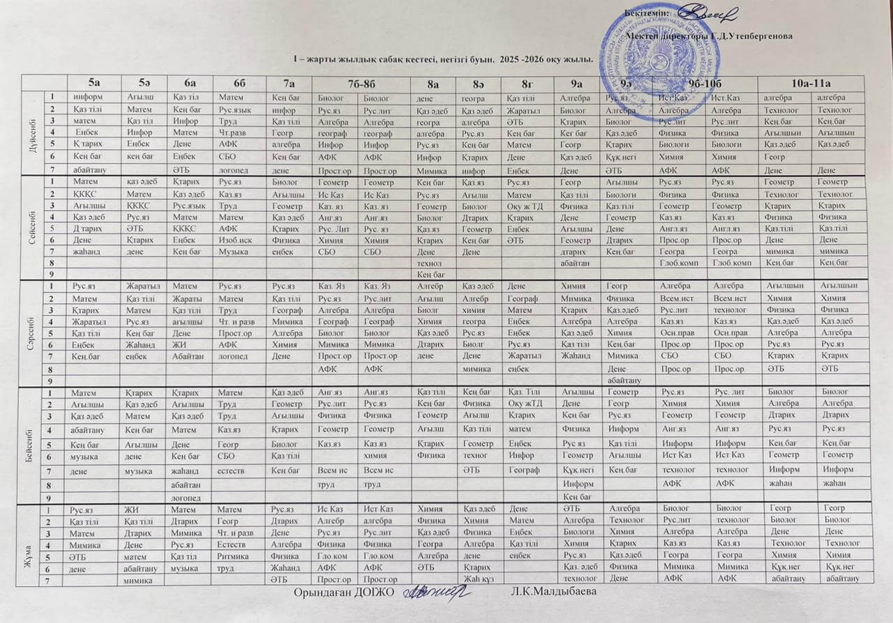 Сабақ кестесi